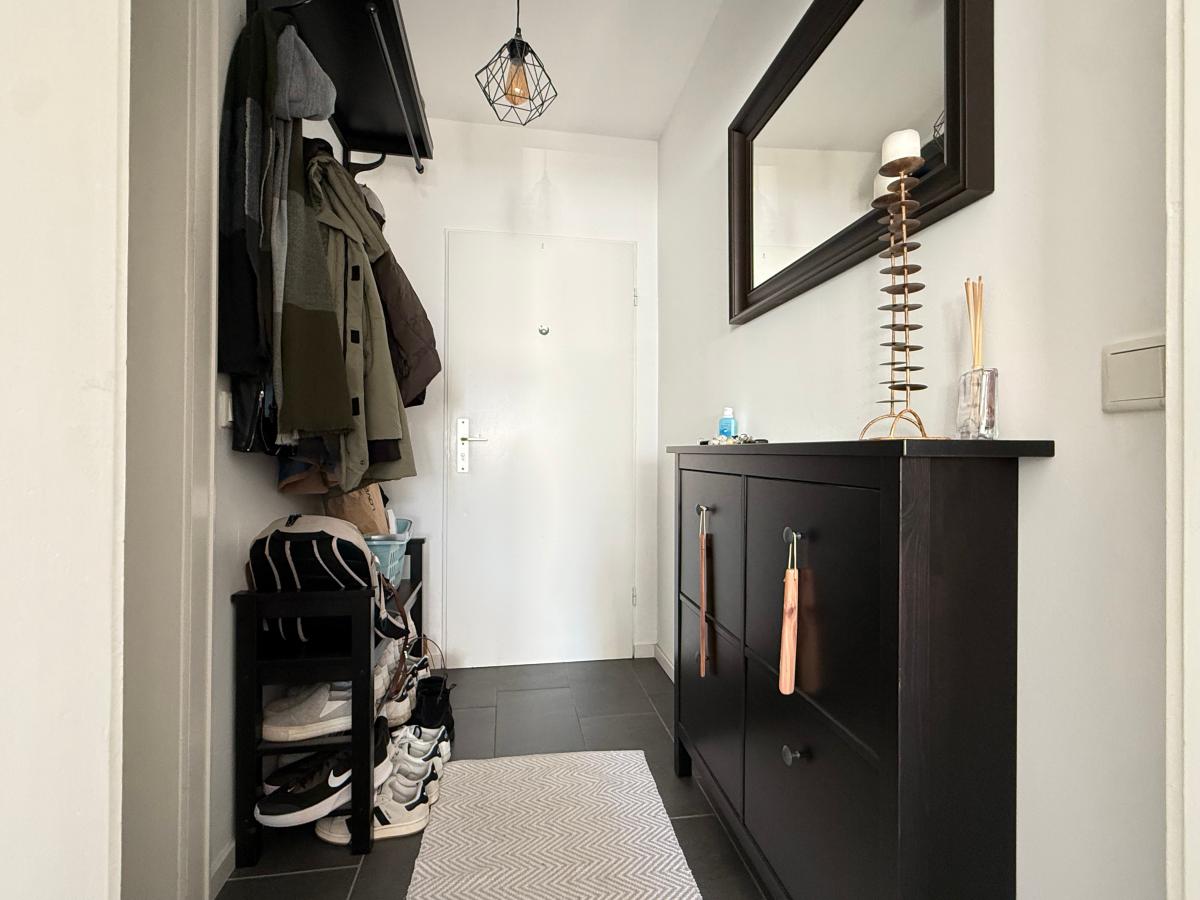 Beim Betreten der Wohnung empfängt Sie ein praktischer Eingangsbereich, mit separatem Abstellraum, der den Zugang zum Wohnbereich gewährt. Das Herzstück der Wohnung bildet der großzügige Wohn-, Ess- und Küchenbereich, der offen gestaltet ist und durch große Fensterflächen besonders hell und einladend wirkt. Hier entsteht eine angenehme Wohnatmosphäre mit viel Platz für gemeinsames Leben und Entspannen. Von diesem Bereich aus gelangen Sie außerdem direkt auf den Balkon, der zu ruhigen Stunden im Freien einlädt.
